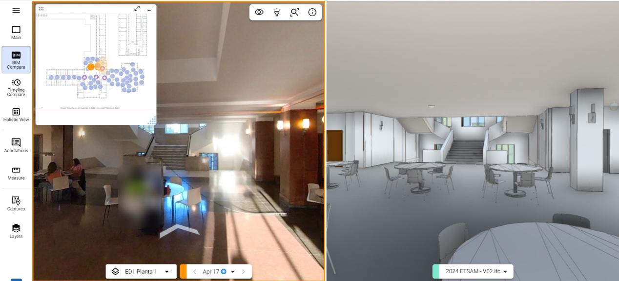 Imagen: Cupix. Comparacion de modelo de Revit con la realidad en el Edificio Ed1.