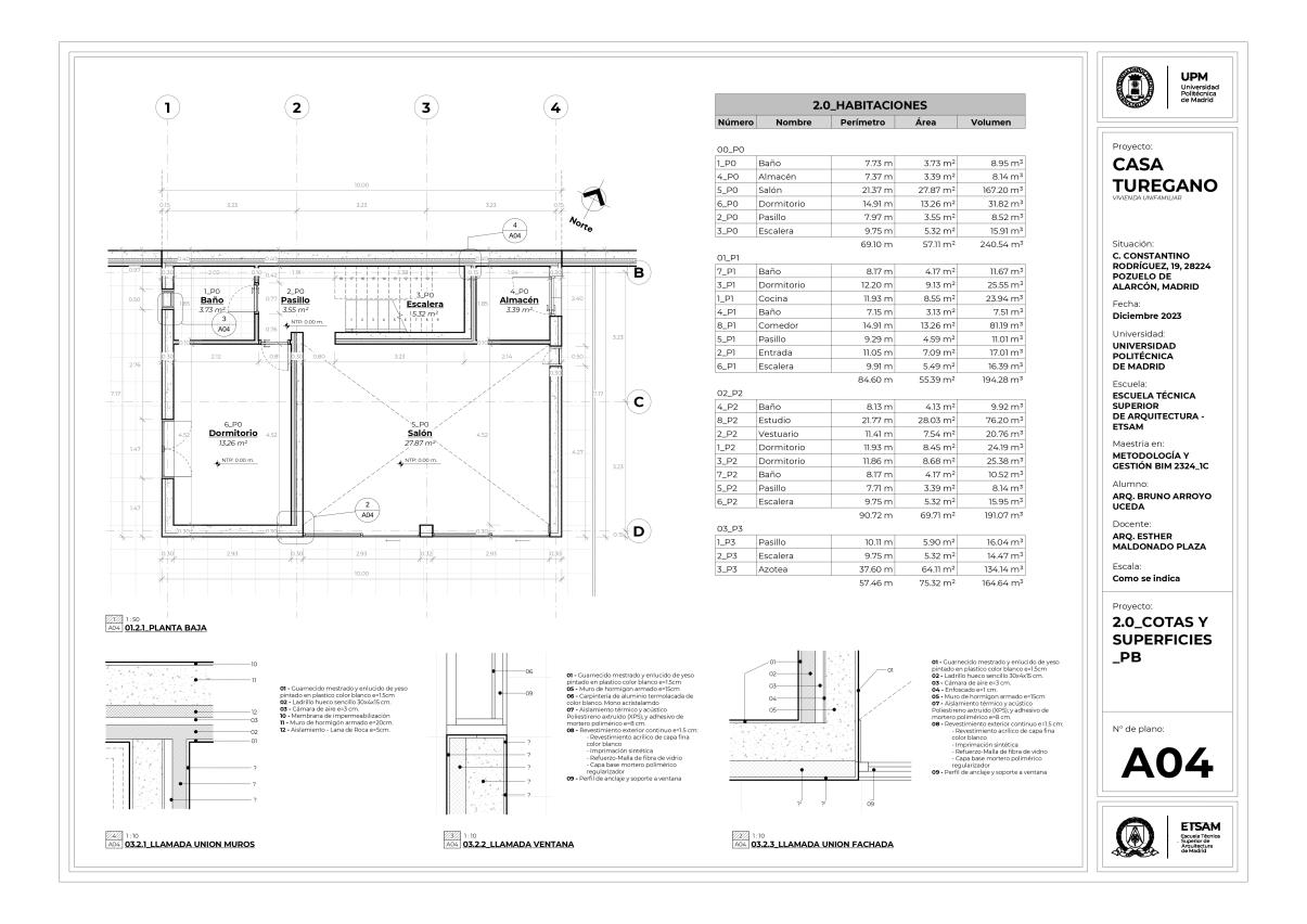 En la parte de la entrega final de este bloque los requisitos consistían en presentar un recopilado de planos arquitectónicos de situación y emplazamiento, distribución, superficies, carpintería, etc.