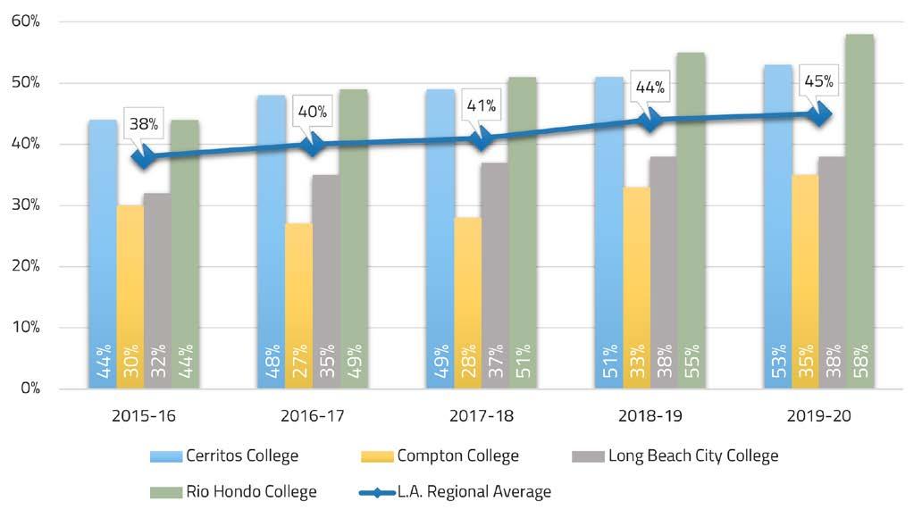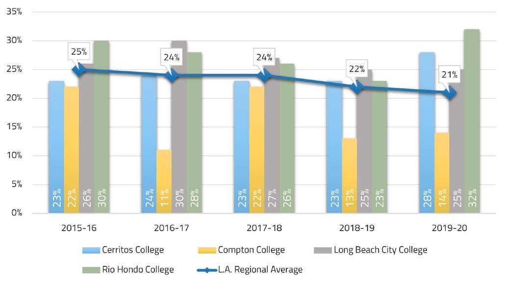 This report uses race and ethnicity data from LaunchBoard collected by the California Community Colleges. The terms in this section, including white, Hispanic, and Black, adhere to the terms and definitions the California Community Colleges use in collecting its data. For definitions, please refer to: https://webdata.cccco.edu/ded/std/std10.pdf