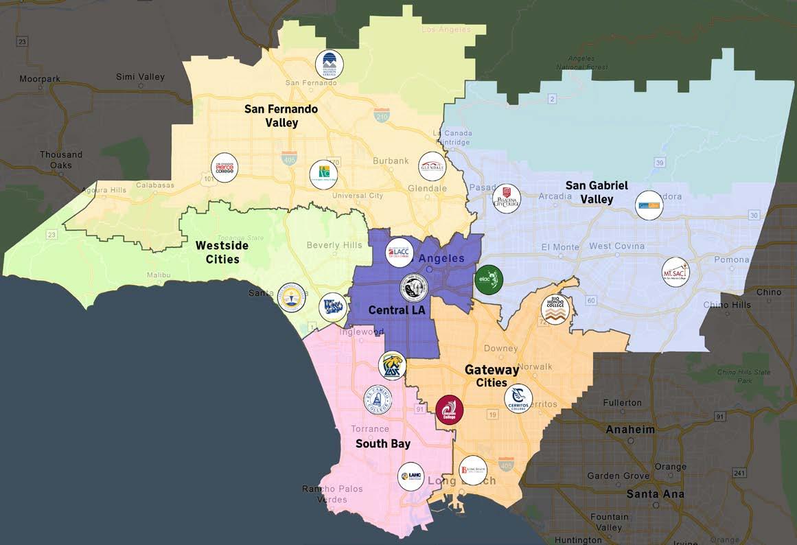 As one of the largest and most diverse counties in the nation, Los Angeles County has an enormous impact on key population and economic indicators in the state. Similarly, its subregions, which encompass 88 cities, are varied and contribute in myriad ways to the region’s overall economic vitality and labor market. To put these numbers into context, make them more digestible, and to better understand the factors defining each of the six subregions in the Los Angeles Basin, this report utilizes a number of data sources that shed light on important labor market needs and the role of community colleges in training a local workforce equipped to meet those needs. Expanding upon initial work conducted by the Los Angeles County Economic Development Corporation that divided Los Angeles into six distinct geographic regions, this report is broken into four sections. The methodology for each section, along with associated data sources, is described below: