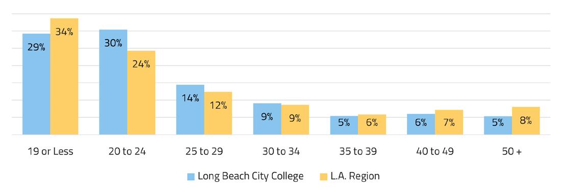 Examining patterns in student demographics, such as race/ethnicity and gender, can help community colleges advance equity and improve academic outcomes for underrepresented students. Additionally, examining the age breakdown of students can show where students may fall in terms of seeking education to further their lifelong careers. If a community college has a significant percentage of students above age 25, this may indicate demand by dislocated workers or incumbent workers seeking to retrain or upskill to access opportunities for career advancement.