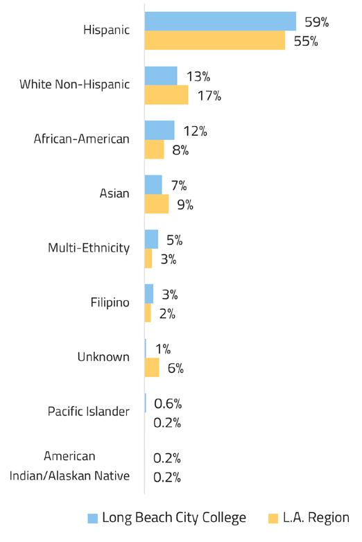 Finally, race/ethnicity analysis in the overall subregional population can be compared with the race/ethnicity composition of individual community colleges or a group of colleges in a subregion. This data can be used to determine if certain race/ethnicity groups are under- or overrepresented at a college or group of colleges.