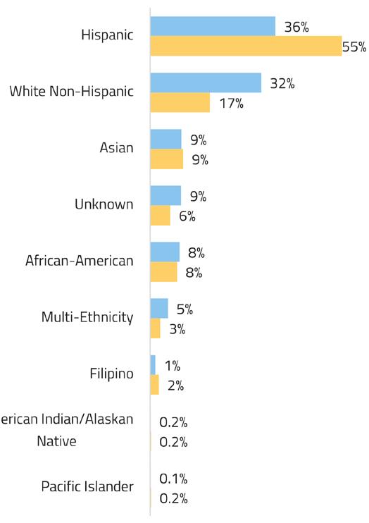 Finally, race/ethnicity analysis in the overall subregional population can be compared with the race/ethnicity composition of individual community colleges or a group of colleges in a subregion. This data can be used to determine if certain race/ethnicity groups are under- or overrepresented at a college or group of colleges.