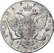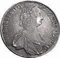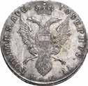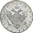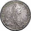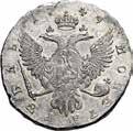 Rublo 1776, San Pietroburgo AR. 24,68g. ø37,2mm. Simile a precedente ma, 1776; in basso ЯЧ. Davenport 1684. Bitkin 221. Diakov 339. Uzdenikov 1077. Severin 2112.