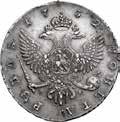 ІСАМОД:ВСЕРОСС: Busto paludato e coronato a d.; sotto, С:П:Б. Rv: МОНЕТА•РУБЛЬ•17 41 Aquila imperiale, coda a punta. T[ С.ПЕТЕРБУРХСКАГО *** МАНЕТНОГО • ДВОРА **. ^. Davenport 1676. Bitkin 201. Diakov 7. Uzdenikov 757.