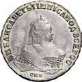 Rublo 1742, San Pietroburgo AR. 25,23g. ø44,3mm. Б•М•ЕЛИСАВЕТЪ•І•ІМП:ІСАМОД:ВСЕРОС: Busto a d. e corona con nove perle, sotto С•П•Б Rv: МОНЕТА•РУБЛЬ•17 42 Aquila imperiale, coda tonda. T[ С. ПЕТЕРБУРХСКА ГО *** МАНЕТНОГО • ДВОРА ** ^ Davenport 1677. Bitkin 245. Diakov 35. Uzdenikov 771. Severin 1419.