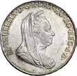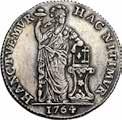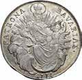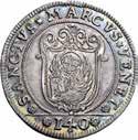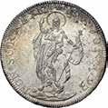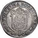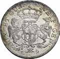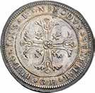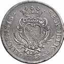 Da 2 Scudi 1705, Genova AR. 76,72g. DVX * ET * GVBERNATORES * REIP * GEN Croce fiorata accantonata da quattro gigli e altrettante testine di putti. Rv. ET * REGE * EOS * 1705 * I * B * M La Beata Vergine in corona di sette stelle ed il Bambino in braccio seduta su nubi, tiene, nella mano d., uno