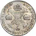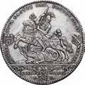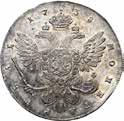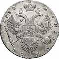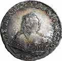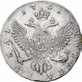 Rublo 1764, San Pietroburgo AR. 23,21g. ø37,2mm. Simile alla precedente ma, 17 64 ai lati ЯІ (Yakov Ivanov). Davenport 1683. Bitkin 185. Diakov 50. Severin 1938.