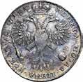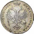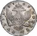 Rublo 1775, San Pietroburgo AR. 22,44g. ø37,4mm. Simile a precedente ma, 1775; in basso Ѳ А. Davenport 1684. Bitkin 219. Diakov 323. Severin 2103.