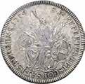 Piastra 1699 anno VIII, Roma AR. 32,06g. ø44,9mm. INNOCEN - XII PONT M A VIII Busto, a d., con camauro, mozzetta e stola ornata da croce radiata; sotto, ·HAMERANVS·F (Giovanni Hamerani I, incisore). Rv: EGREDIATVR POPVLVS ET COLLIGAT. La raccolta della manna nel deserto; esergo,