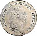 Riksdaler (3 Daler silvermynt) 1791, Stoccolma AR. 29,34g. ø41,9mm. Come precedente ma, 17-91. Davenport 1736. AAH 53. KM 525. SMH 5.9.