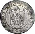 Si tratta della prima emissione di scudi battuti ”al torchio”. Gli esemplari presentano, sul taglio, la dicitura PONDERIS SECVRA FIDES TVTVMQVE PRAESIDIVM, a significare la maggior garanzia di questa tecnica di coniazione contro ogni frode ponderale.