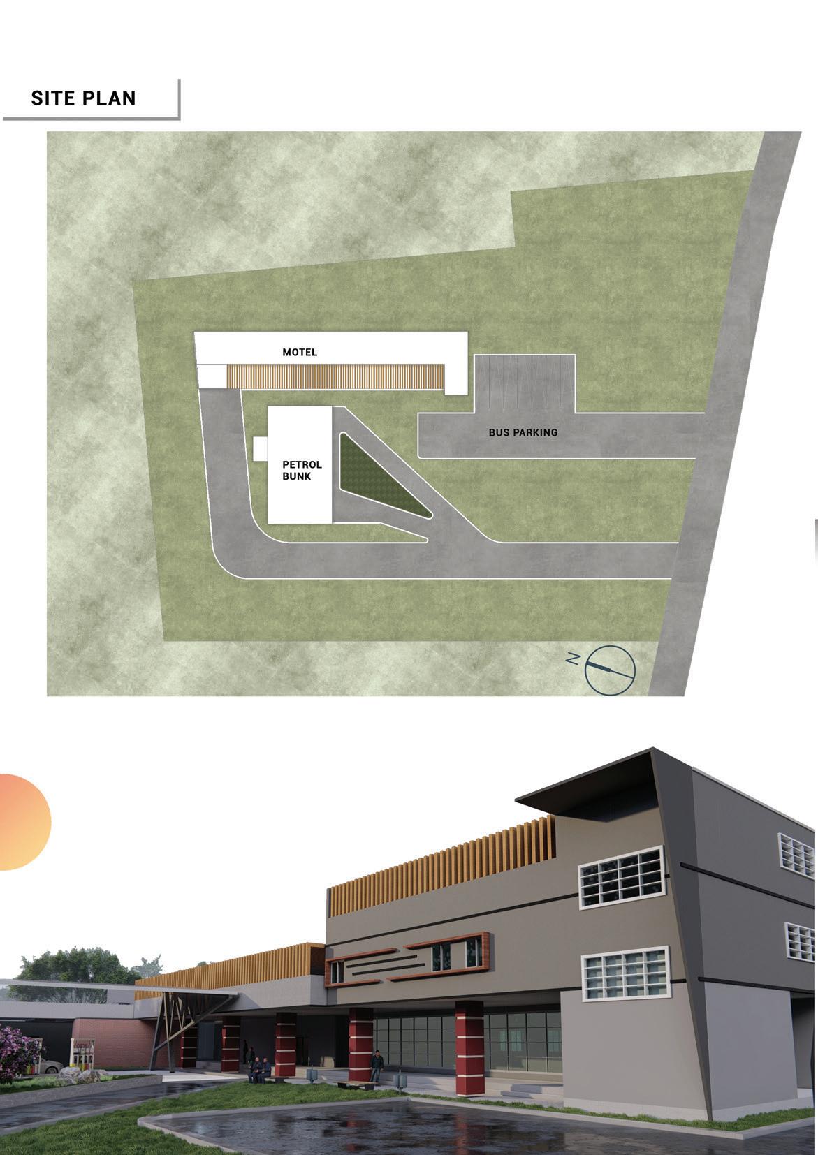 THE INTENT OF THIS MOTEL DESIGN IS TO PROVIDE AFFORDABLE, CONVENIENT AND COMFORTABLE ACCOMMODATIONS FOR TRAVELERS SEEKING A PLACE TO REST ADN RECHARGE DURING THEIR JOURNEY. AS ITS LOCATED ON A HIGH WAY , A PETROL BUNK IS PROVIDED FOR FUELING UP THEIR VEHICLES.