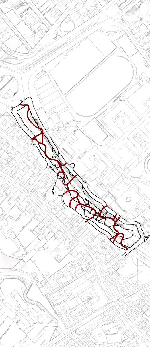 Path Definition: Main pedestrian axis for circulation, motorways, running tracks etc