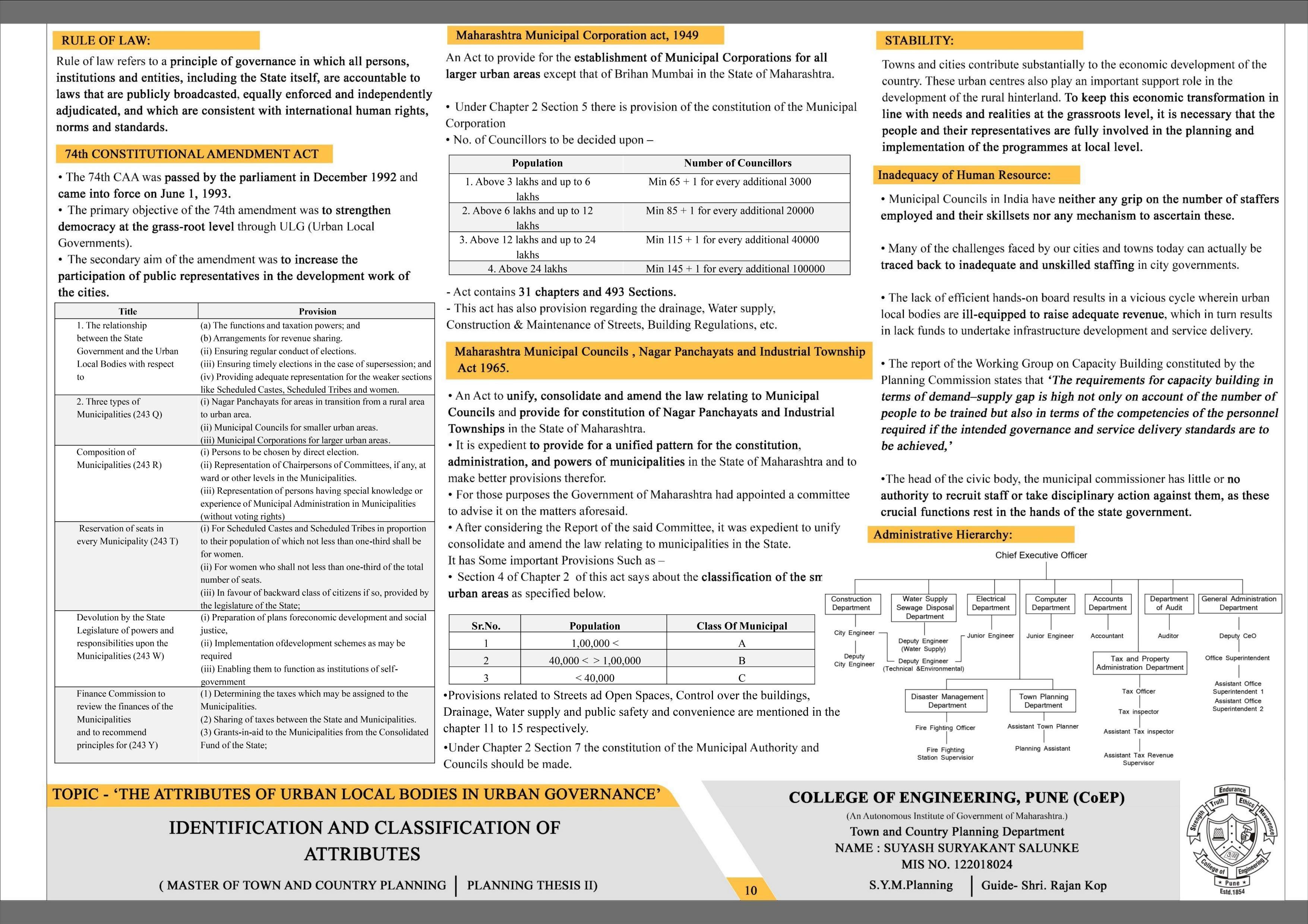 The project was based on the study of the assigned functions of managing local governance and problems which comes in the path of its functioning. Urbanization in India is increasing rapidly, Are our local bodies capable to tackle the upcoming issues? the study focuses on the problems that the local bodies face while governing and the solutions were given as a proposal.
