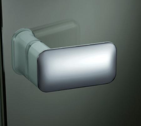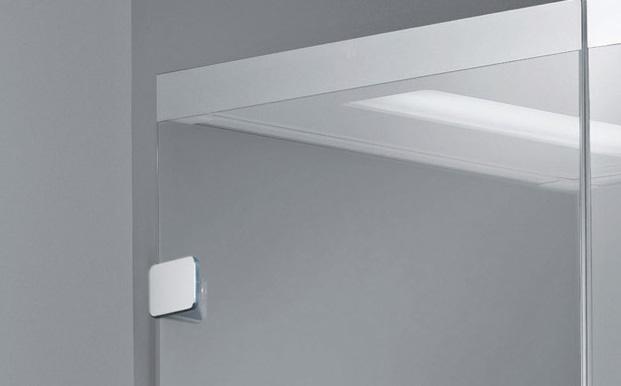 Bei der BODY+SOUL werden die Scharniere außen auf das Glas geklebt. Diese Technik wurde gemeinsam mit führenden Spezialisten für Klebtechnik und einem