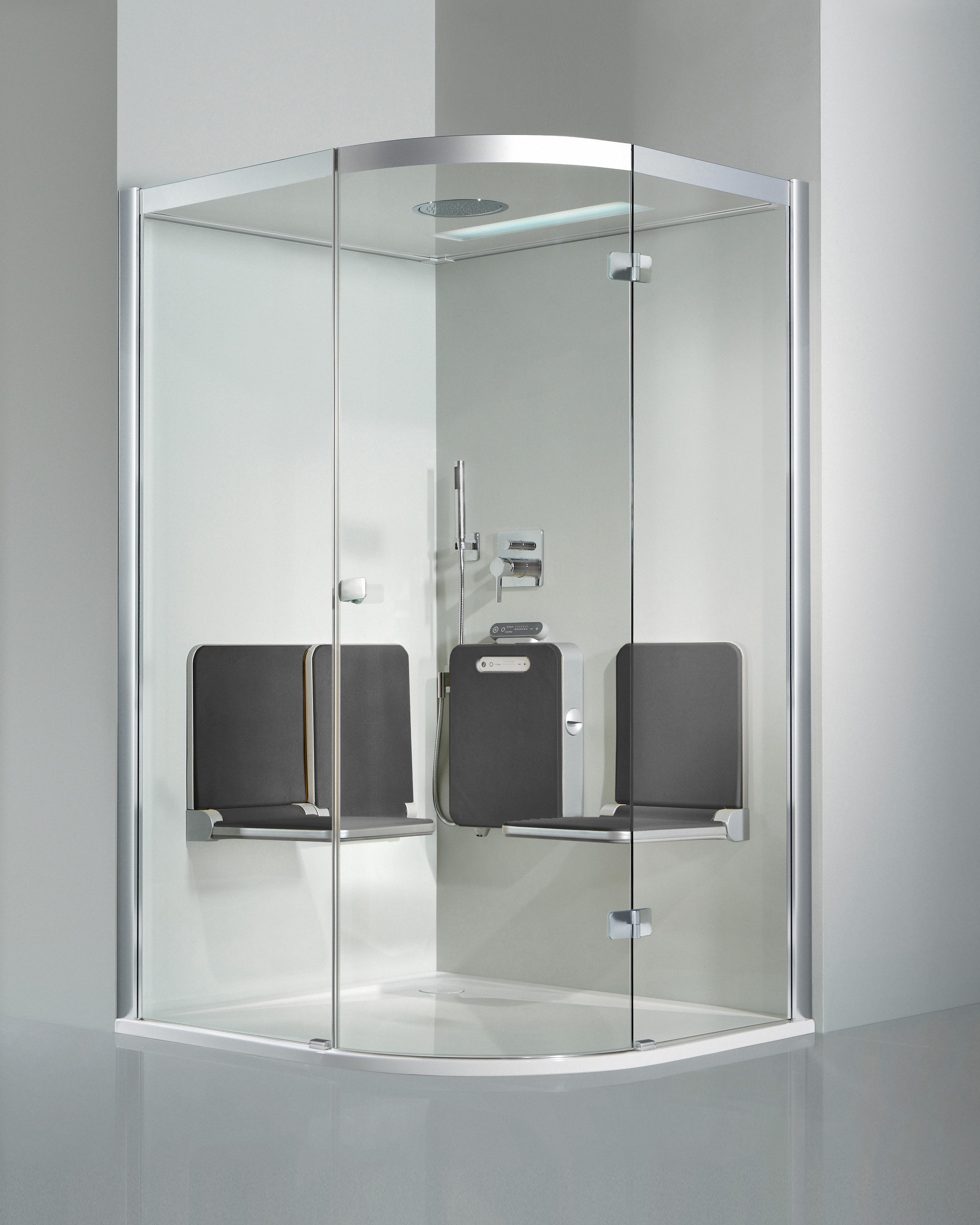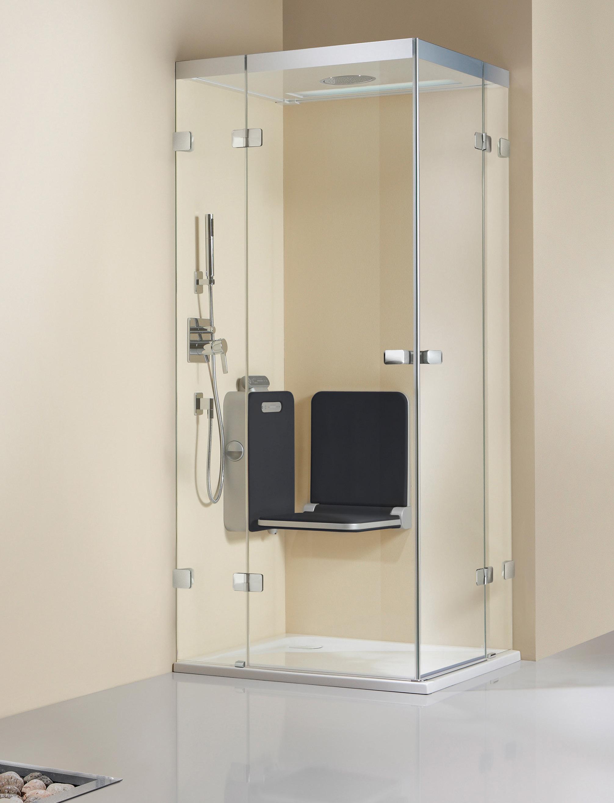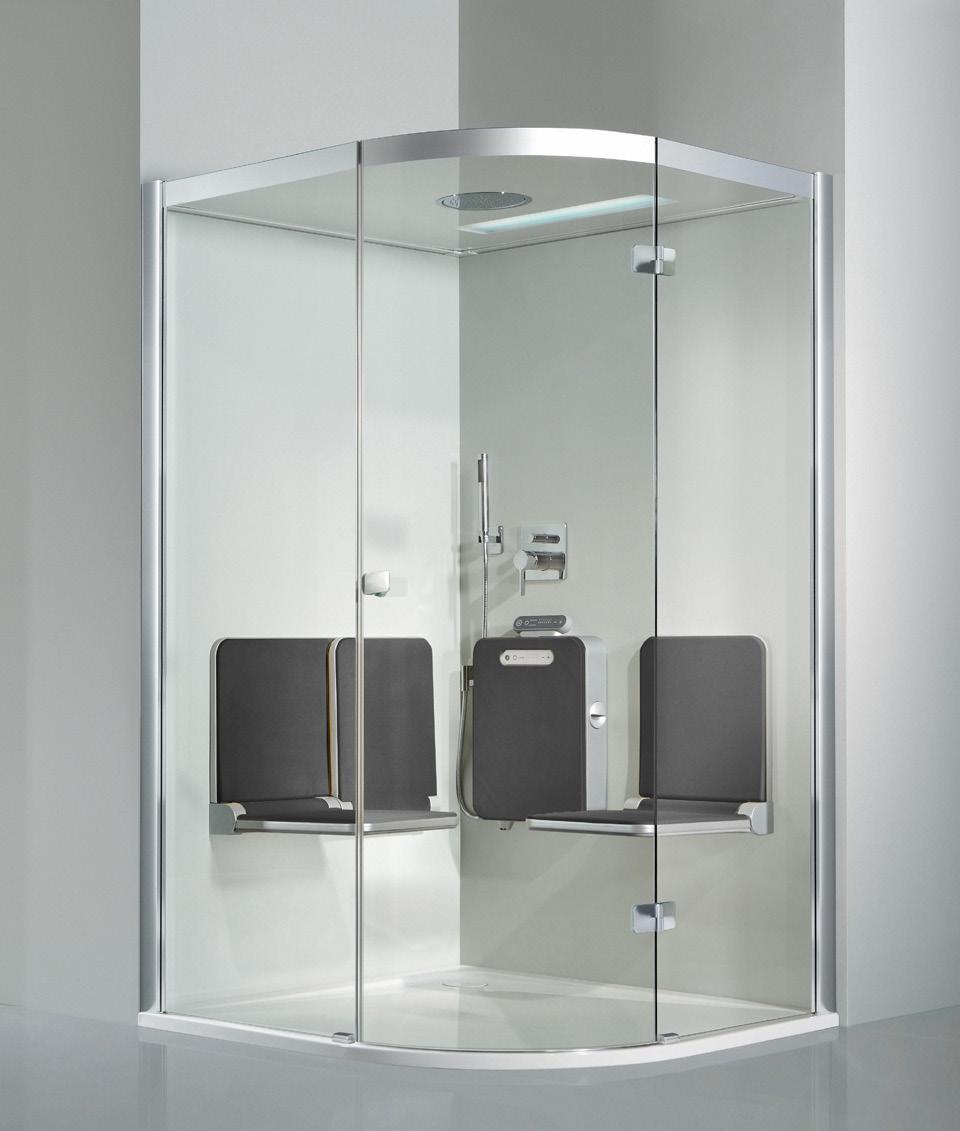 Einfach hochklappen. Auch die Sitze der BODY+SOUL sind bis ins letzte Detail durchdacht. Hochgeklappt werden sie mit einem Magnetverschluss fixiert und machen Platz - zum Beispiel für ungestörtes Duschen! Beim Herunterklappen sorgt eine Dämpfung dafür, dass die Sitze sich sanft senken.