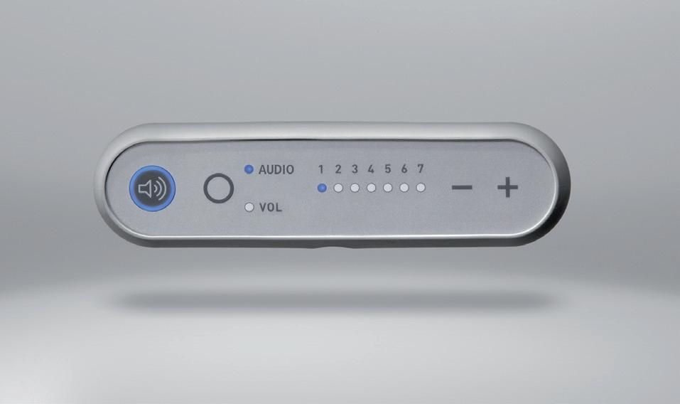 Optionale Ausstattung: Audiosystem mit Bluetooth Empfänger, zwei Lautsprechern, USBAnschluss für MP3, AUX (3,5 mm Stereo-Klinkenbuchse), in Kombination mit LED-Farblicht mit 7 direkt wählbaren Farben, zusätzlich freie Farbwahl und regelbare Farbintensität Kopfbrause Ø 23,5 cm