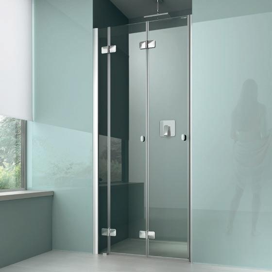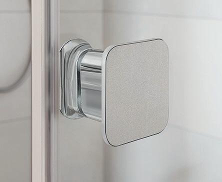 Die Flügeltüren öffnen bis 180° nach außen. Ein spezieller HEBE-SENK-Mechanismus erleichtert das Öffnen und Schließen der Duschtür.