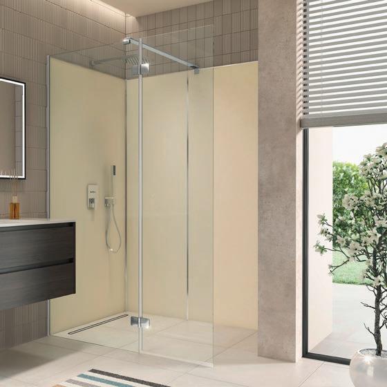 Die 360 Walk In Vario unterteilt die Walk InGlaswand in einen fi xen und einen beweglichen Teil und schafft damit Platz zum Einsteigen in den Duschbereich, ist einfach zu reinigen und 100 % barrierefrei!
