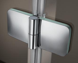 Bei vielen Duschenserien werden die Scharniere und Beschläge auf der Glasaußenseite sicher verklebt. Die Glasinnenseite bleibt völlig glatt und ohne vorstehende Elemente oder Rillen, das vereinfacht die Reinigung.