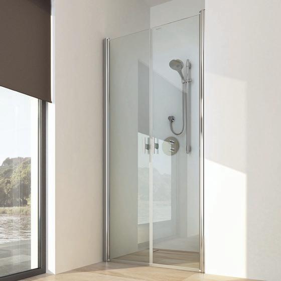 Die Türen können sowohl nach innen als auch nach außen schwenken. Für kleine Bäder und große Räume geeignet. Schwenkradius: 180°
