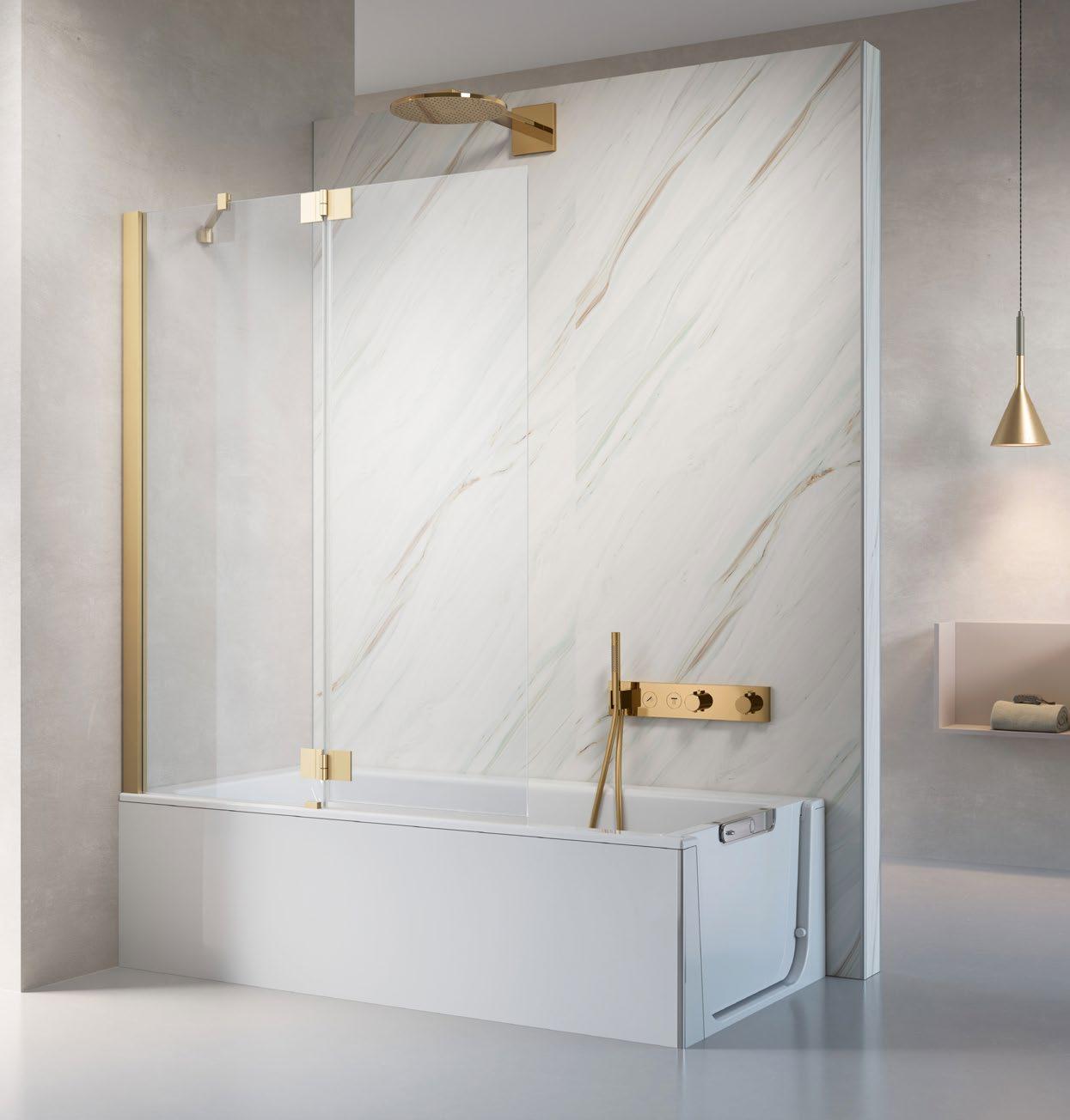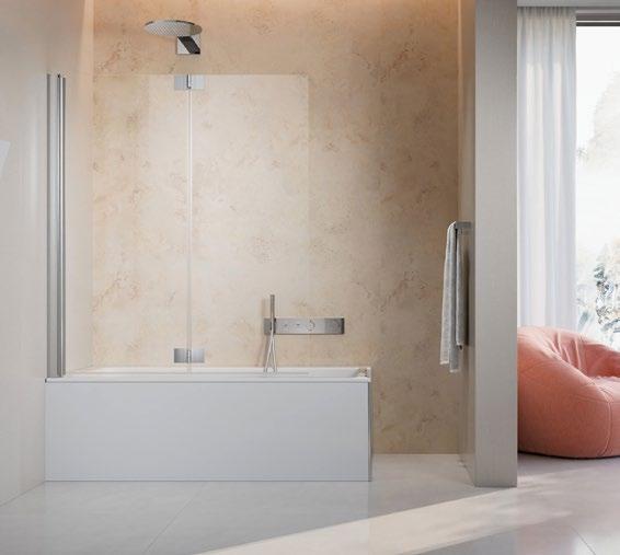 Flexibilität auf einem neuen Niveau. Das schwenkbare Glaselement lässt sich einfach nach innen oder außen drehen. So bietet es auch in kleineren Nischen einfachen Einstieg sowie breiten Spritzschutz.