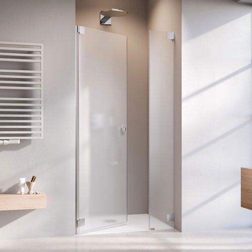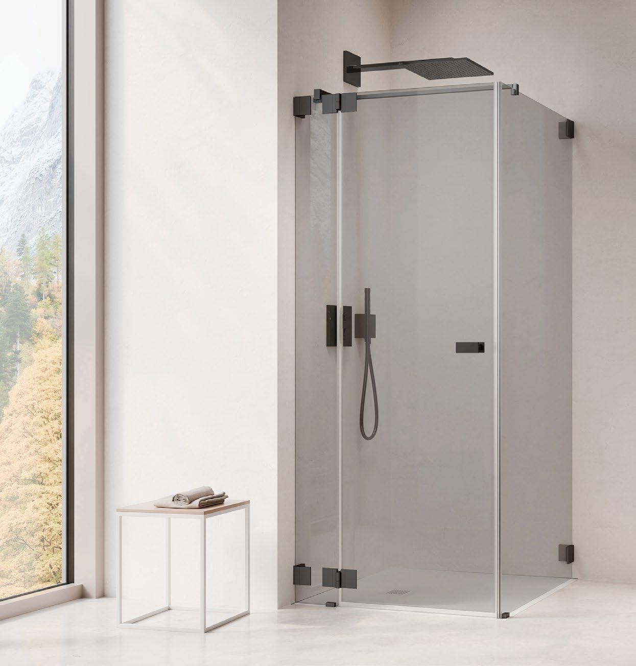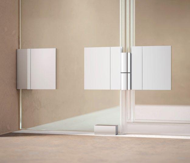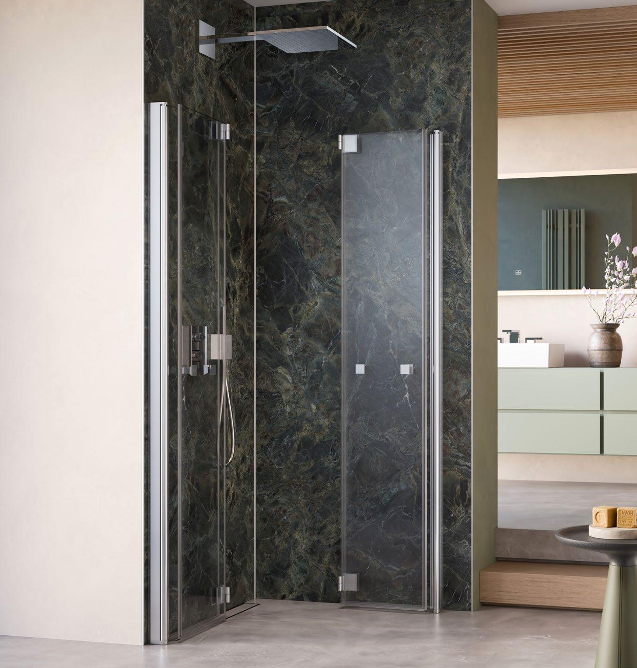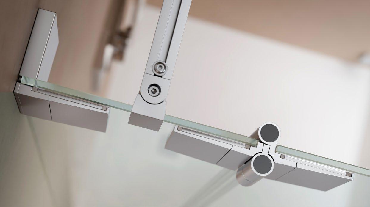 Moderne, offene Duschlösungen ohne Türen sind nun auch in kleineren Bädern möglich. Die 360 ° TWIN-Scharniere sorgen für elegante, stabile Funktionalität, die ARTCLEAR Glasveredelung reduziert den Reinigungsaufwand auf ein Minimum.