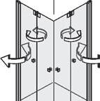 Öffnen bis 180° nach außen. Wahlweise links oder rechts öffnend, Serienhöhe 200 cm. Barrierefreier Zugang, Anwendung AUF oder OHNE Duschwanne
