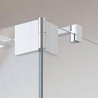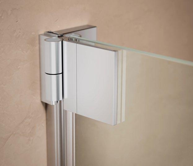 Die Wandbefestigung über zwei schmale Scharniere oder Wandwinkel ist eine besonders transparente Lösung für Ihr Bad. Das Glas verläuft nahezu nahtlos von Wand zu Wand.