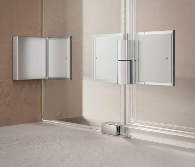 Durch die 360 ° Scharniere lässt sich jede Türfläche nach innen und außen falten – ideal für kleine Bäder oder schmale Nischen. Das einzigartige 360 ° TWINScharnier bringt freien Raum in jedes Bad. Nach dem Duschen lassen sich die Wände einfach wegfalten.
