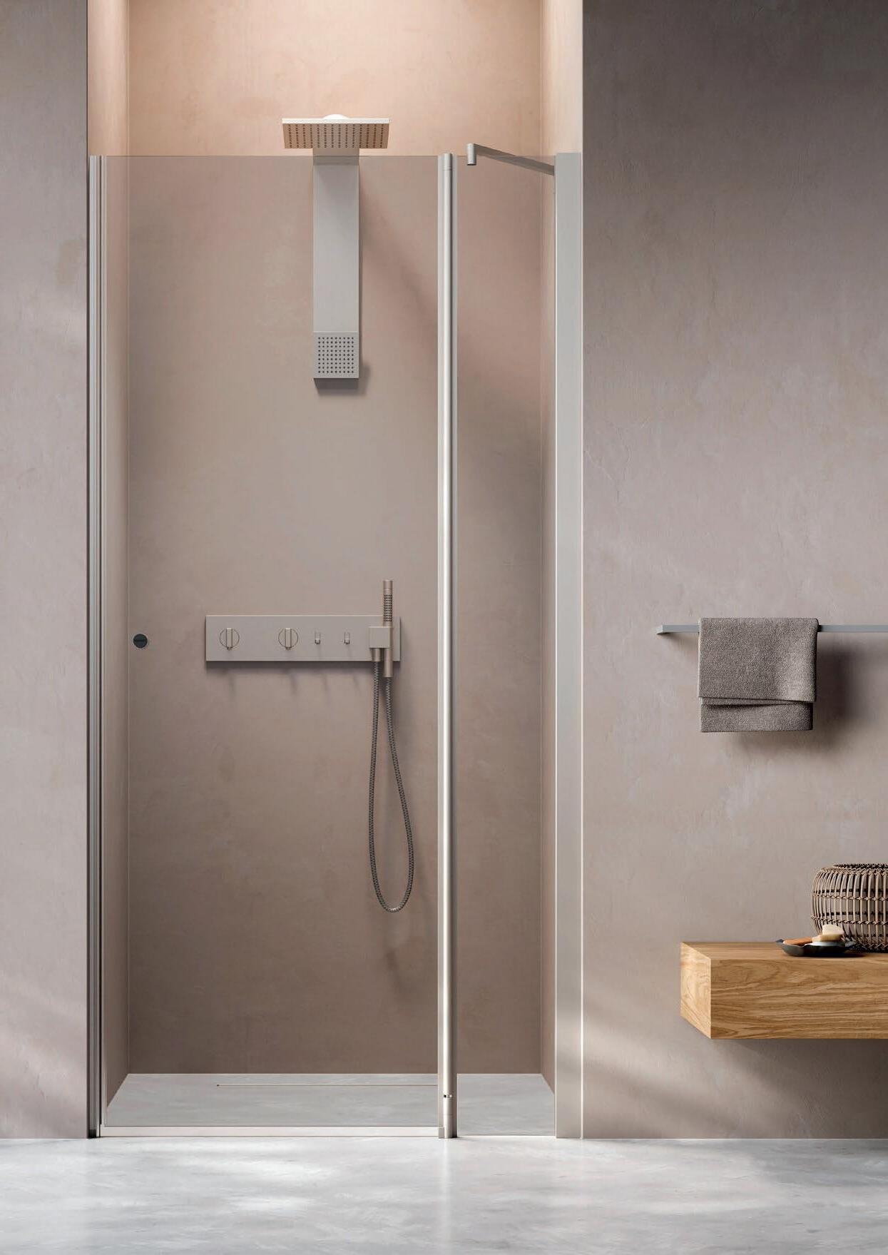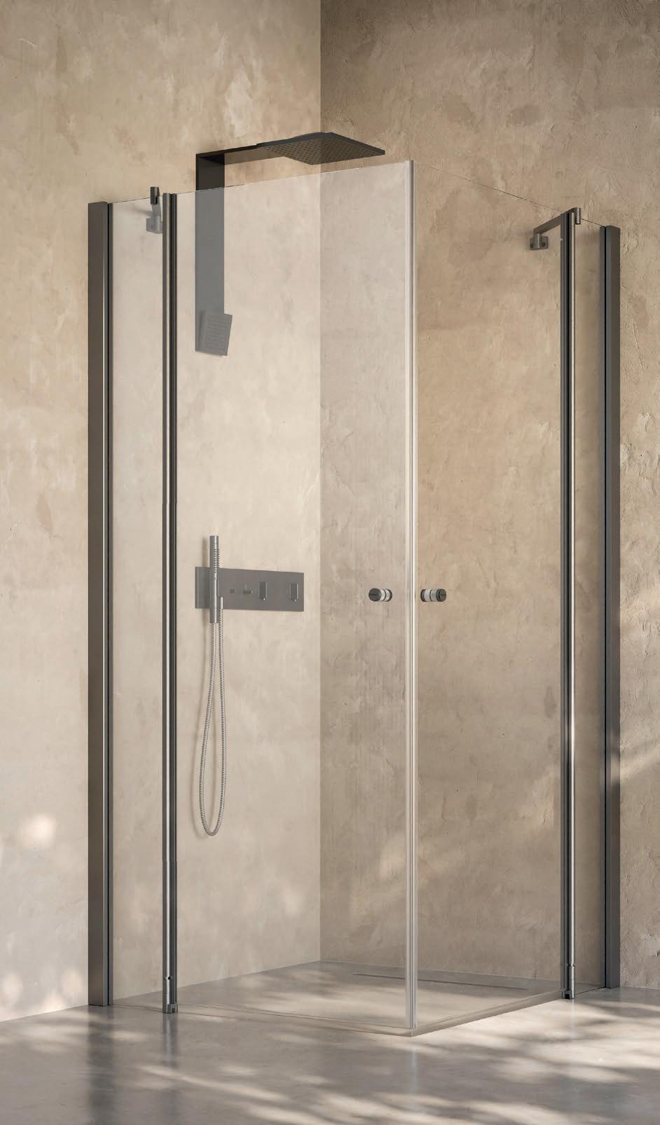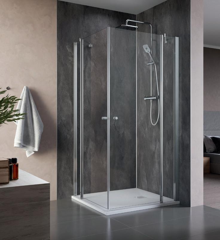Die Pendeltür am Fixteil lässt sich spielend einfach um 180° nach innen und um 180° nach außen öffnen, was speziell in kleinen Bädern –und dort, wo nur wenig Platz zum Öffnen der Tür vorhanden ist – ungeahnte Möglichkeiten bietet.