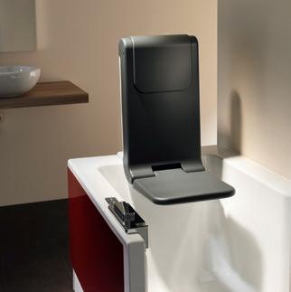 Sie benutzen die Duschbadewanne, brauchen aber den Komfort-Hebesitz nicht? Dann können Sie das Sitzblatt einfach hochklappen. In dieser Parkstellung braucht er fast keinen Platz und stört weder beim Baden noch beim Duschen. Wird der Hebesitz wieder gebraucht, steht er sofort zur Verfügung - ohne mühsames Hineinund Herausheben.