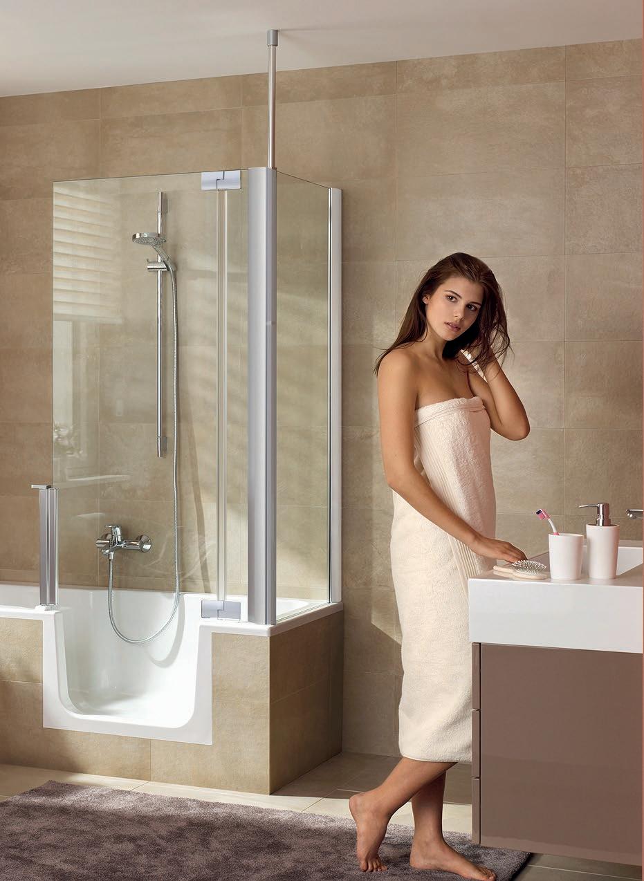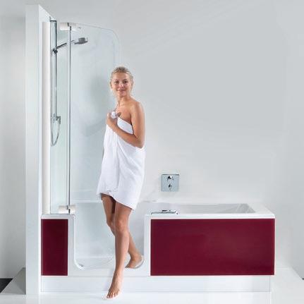 • Badewannentür öffnet nach innen