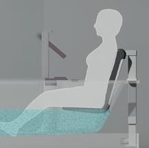 Beim Absenken passt sich die Lehne langsam der Neigung der Wanne an, die Sitzfläche bleibt dabei immer waagrecht.
