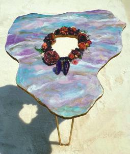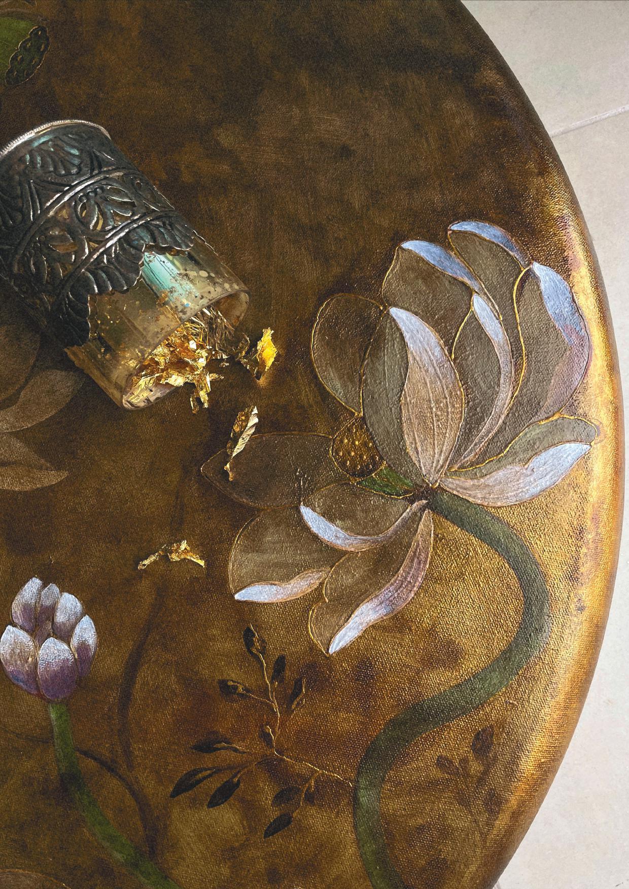 She uses different materials like natural stones, shells, pearls, and many more to construct luxurious mix media art pieces. She paints on tables, serving plates, trays, coasters, cheeseboards, jewelry boxes and many more. She conducted art workshop classes and presented her art pieces in exhibitions in the UAE. Alaa created a way to use natural dried flowers in resin to keep its natural look and form without using mold. Unlike the normal way of using flowers in molds filled with resin. Alaa is the founder and owner of Alolele.art, an online business where she sells customized art pieces made of resin, fluid art, calligraphy, and mixed media for customers and art collectors.