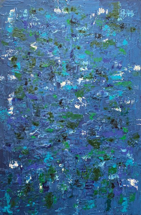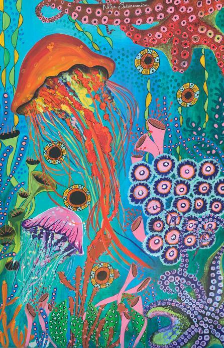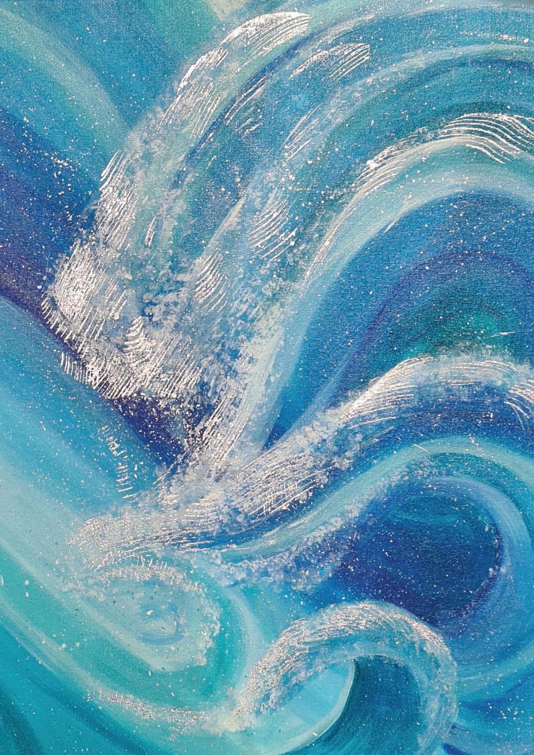 She draws inspiration from many artists who she closely admires including Gerhard Richter, Hokusai and Vincent van Gogh to name a few. Through her other passion of traveling, she has been able to see works of many contemporary and modern artists in person, which has furthered her practice and engagement with art. Common themes in her work are nature, particularly the beauty and colors of the ocean and various cultures.