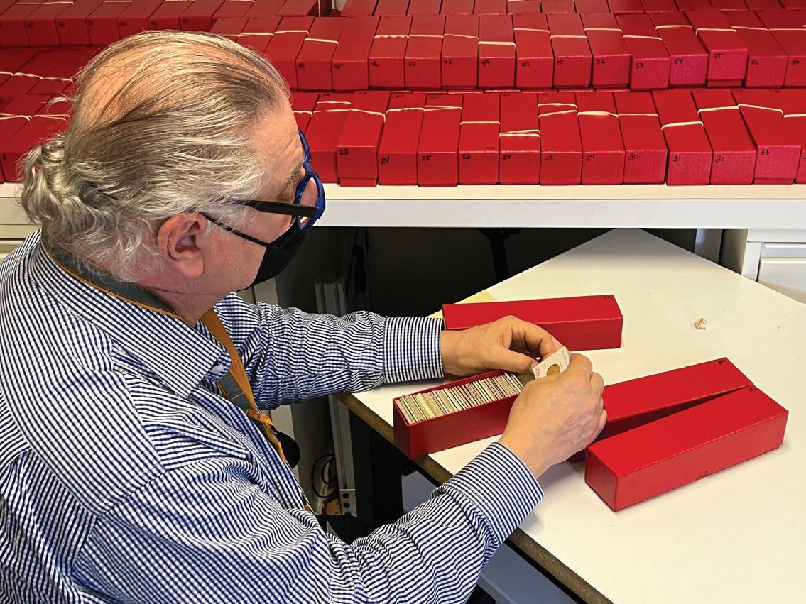 Above Alan Stahl reviewing the Theodotou Collection of Byzantine coins (Photo/Kirstin Ohrt)