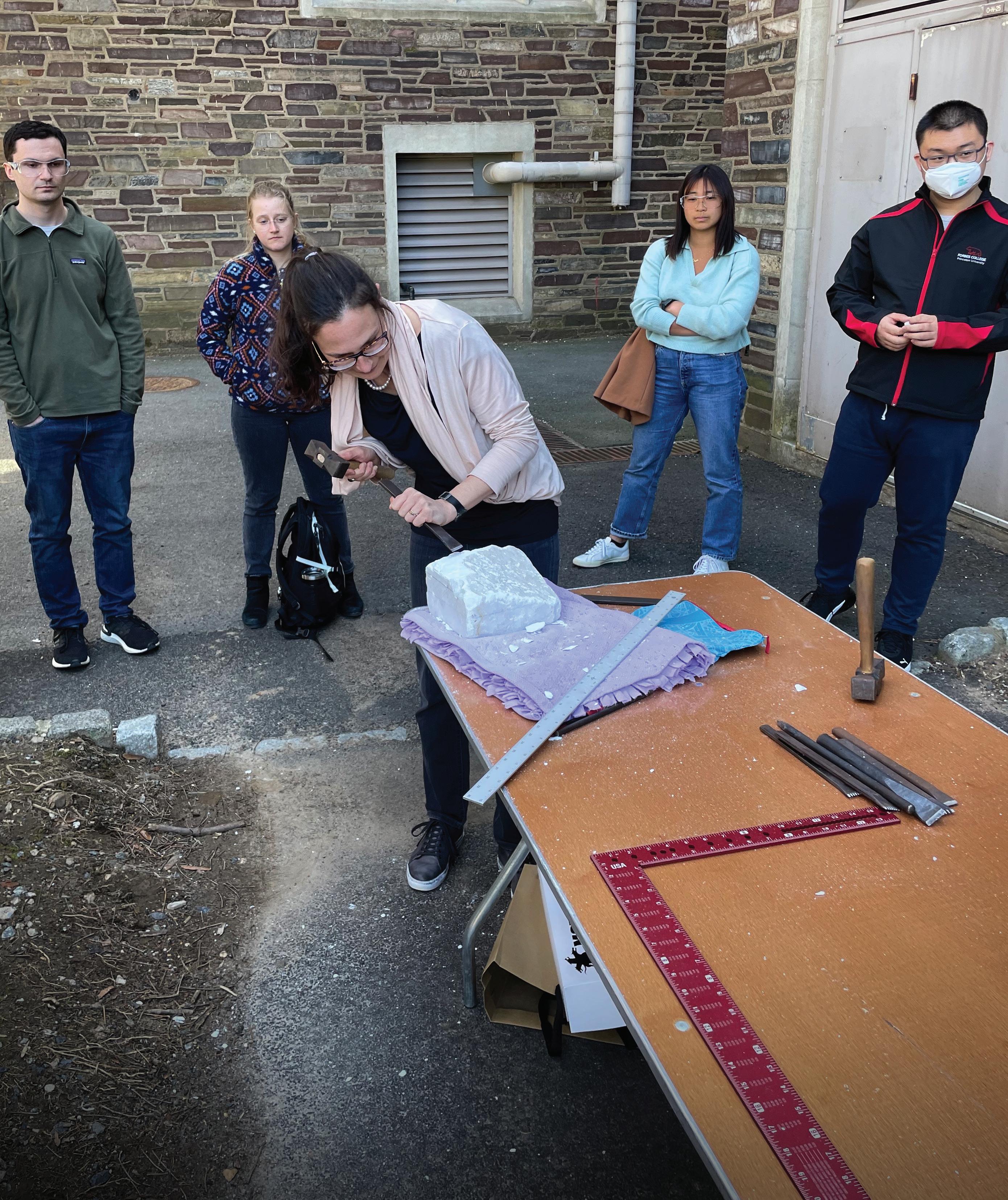 Patricia Blessing at work in a stone carving work shop led by Professor Sam Holzman as part of her course ART 401. (Photo/Basile Baudez)