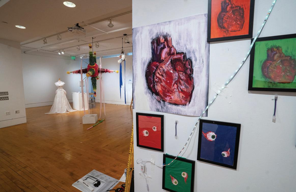 Artist Christina Fernandez gave a tour to Monica Bravo and her ART 273 students in her exhibition Christina Fernandez: Multiple Exposures at Art on Hulfsh (Photo/Kristina Giasi)