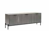 La base TV también reproduce el diseño de la colección con elementos de metal en acabado negro
