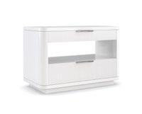 A seamless integration of form and function, sculptural designs are emphasized by opengrain oak veneers in a neutral finish for added interest and an organic element.