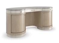 Like a finely tailored garment, details and texture bring a look together, from a petite seat with a dressmaker skirt, cinched together by Brushed Gold metal brackets, to an elegant desk with a Rum Raisin-painted interior, and a sleek chest, wrapped in a metallic charcoal paper that emulates eel skin.
