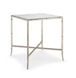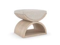 Klismos-inspired shapes in a distressed ivory velvet let you create a softly sophisticated space for entertaining and conversation. A curved end table in a mix of White Rhino stone and a Whisper of Gold adds depth and reflection to seating areas, grounded by a dually functional cocktail table.