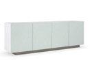 Composed of convex ridges rippling across a surface, reeded elements integrate pattern and texture to create visual interest, adding depth and dimension to living, dining, and bedroom interiors. Standout designs lend a modern interpretation of traditional forms, celebrating attention to detail and materiality. Dark Chocolate wood veneers emphasize lines and a clever use of geometry, while Sparkling Argent and Matte Pearl finishes offer a hint of shimmer to garner further attention.