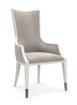 With graceful curves and a tall tapering back, the Tall Order chairs invite gazing and gathering with guests. Dressed in a lustrous basketweave fabric with a complementing beige welt that subtly frames its elegant silhouette.