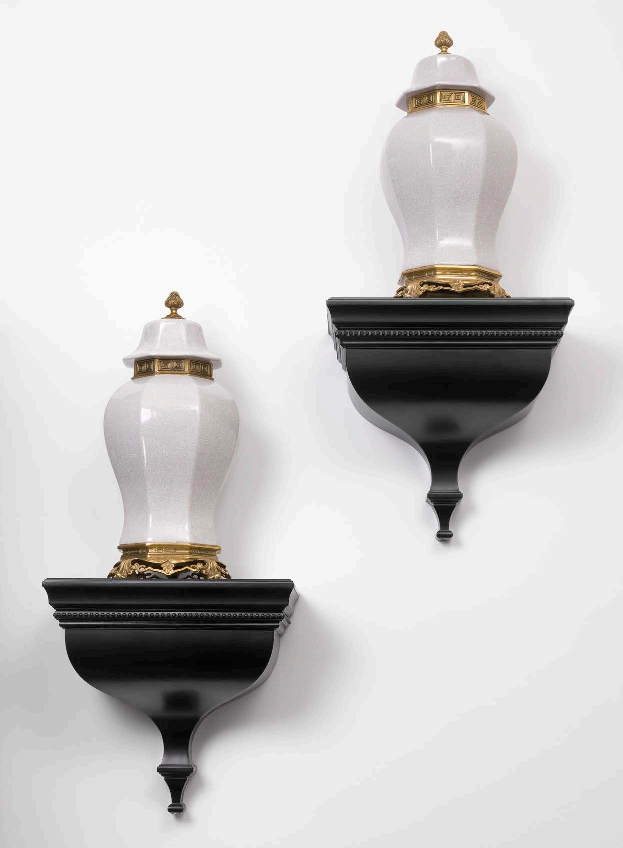 Showcase your treasured family photos, candle holders or decorative objects on the Sheffield Wall Corbel. Meticulously carved from mahogany wood, this classic black finish corbel adds a sense of drama to your home décor. The cream-coloured ceramic Debussy Vase on top provides a touch of dynasty elegance, adding to the grandeur of your interior.