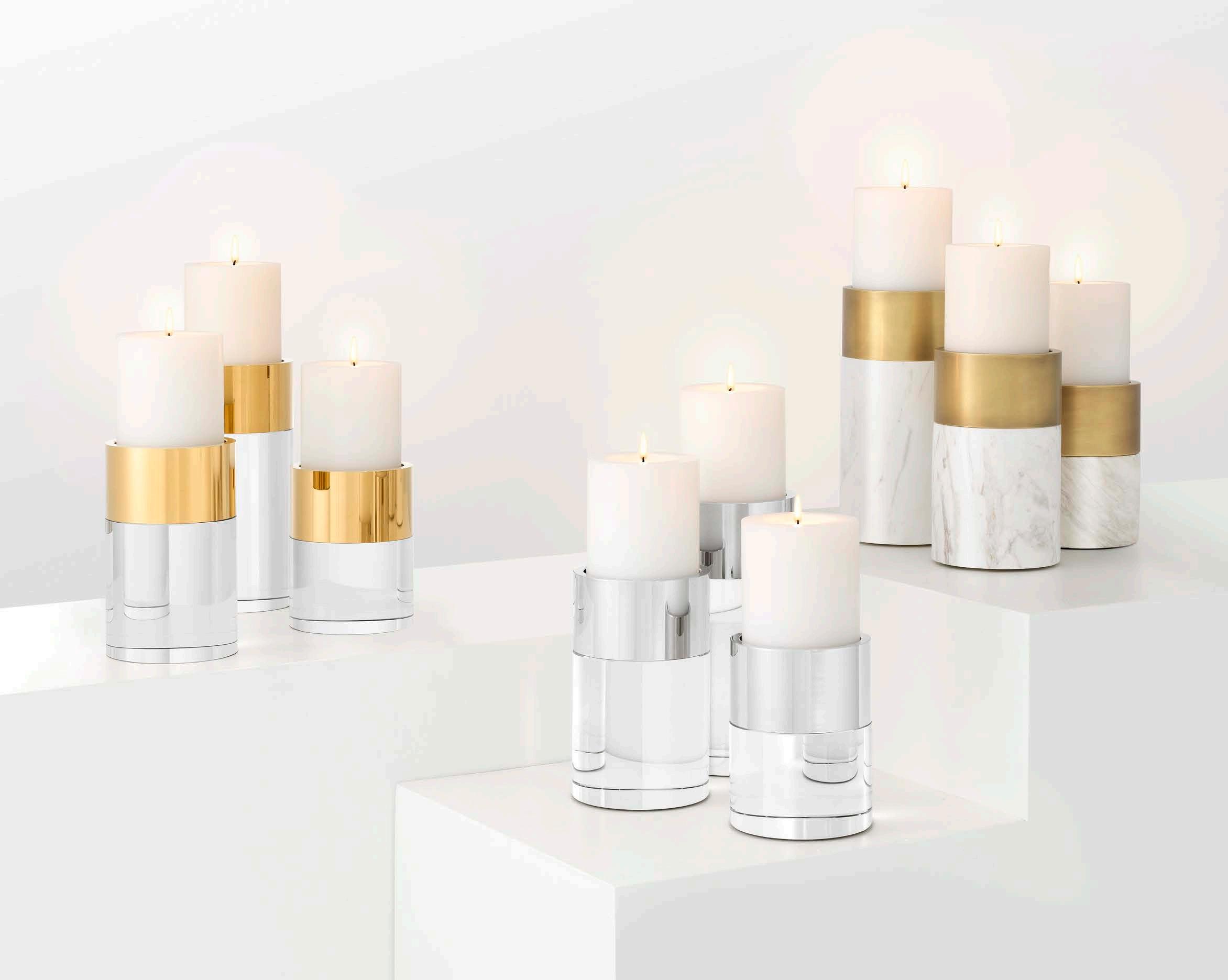 Illuminate a romantic rendezvous or family dinner with the Livia Candle Holders. Fitted with taper candles (not included), these sophisticated candle sticks will let your interior surroundings bathe in candlelight, thus creating an intimate atmosphere. They come in 3-piece sets and are available in different finishes.