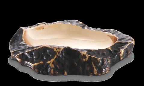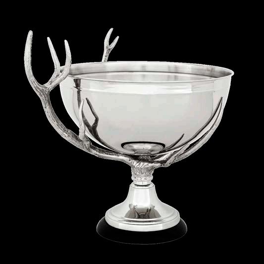 Channel classical style into your décor with these majestic elevated bowls. The Lindroth Bowl is supported by two vintage brass palm trees and has a coordinating trim. It is mounted on a round base of black granite. The silver finish Byzantium Bowl features a snake on a square black granite base.