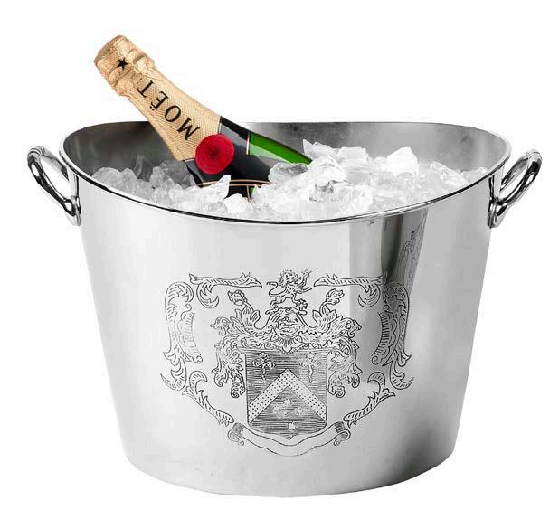 Elevate any entertaining occasion with the Maggia series, consisting of a single and double wine cooler and a champagne cooler. Their brightly polished stainless finish offers glamorous appeal, while the etched crest gives them classical appeal.